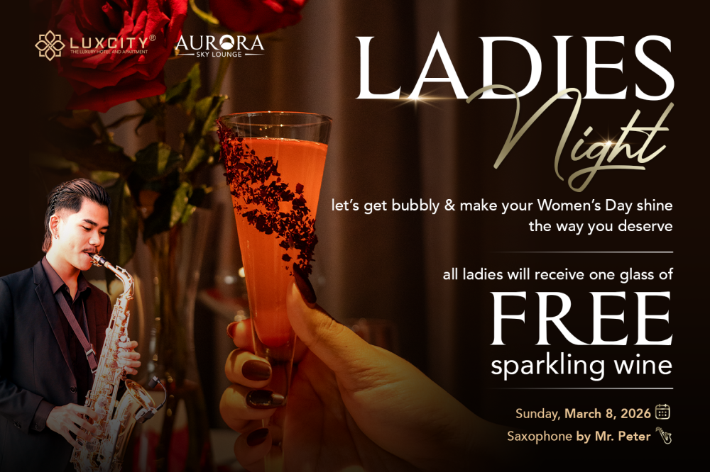 Join us on March 8, 2026, for Ladies Night at Aurora Sky Lounge! Enjoy a free glass of sparkling wine, live saxophone music, and a memorable evening with friends, family, or your loved one. Reserve now!