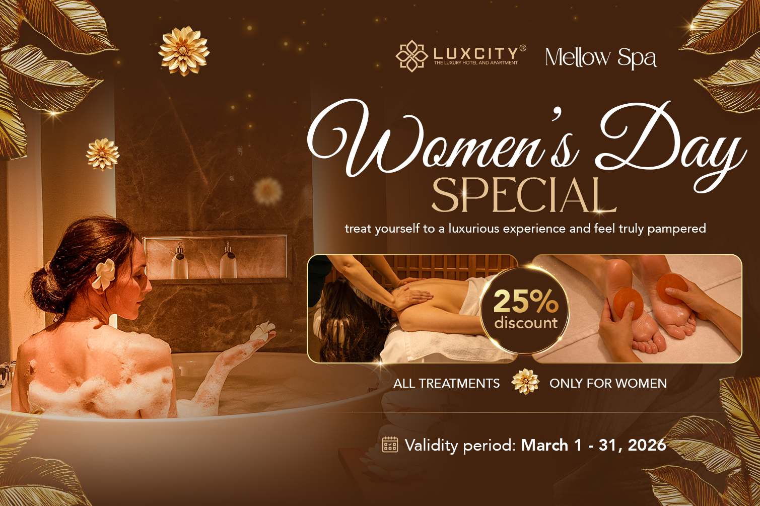 WOMEN’S DAY PROMOTION: 25% OFF ALL TREATMENTS AT MELLOW SPA